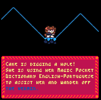 Cake, uma instruída linguista, iniciou seu último projeto - cavar um buraco até os confins da Terra! Para isso, ela utilizará seu Dicionário de Bolso Mágico, e vai precisar traduzir expressões, verbos e substantivos para manusear seus poderes e cavar cada vez mais fundo...